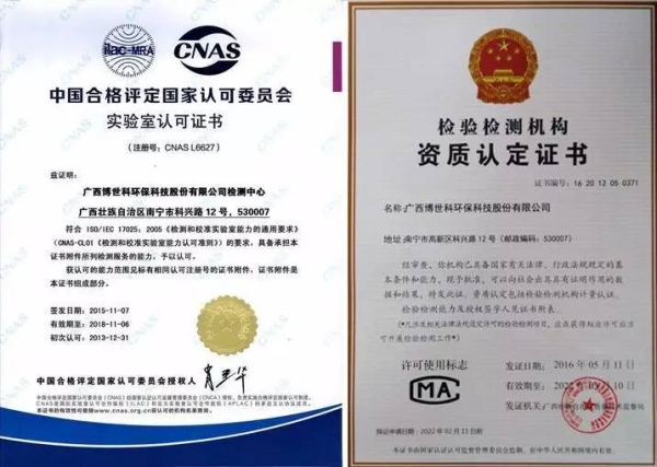 公司檢測(cè)中心于2013年通過中國(guó)合格評(píng)定國(guó)家認(rèn)可委員會(huì)CNAS國(guó)家實(shí)驗(yàn)室資質(zhì)認(rèn)可,是廣西為數(shù)不多的同時(shí)具有CNAS和CMA資質(zhì)的民營(yíng)企業(yè)實(shí)驗(yàn)室。目前檢測(cè)中心配置有與檢測(cè)業(yè)務(wù)相配套的氣相色譜儀、液相色譜儀、紅外分光光度計(jì)、電感耦合等離子體光譜儀等相關(guān)大型檢測(cè)儀器設(shè)備,可進(jìn)行覆蓋水和廢水、環(huán)境空氣和廢氣、土壤和固廢等類別的多個(gè)指標(biāo)的檢測(cè)工作。